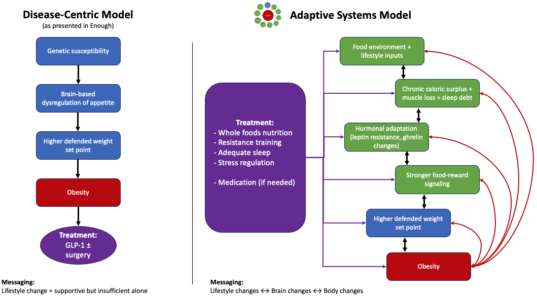 One way is to frame obesity primarily as a brain-based disease with downstream effects. Another is to view it as a complex adaptive system — where environment, behavior, and biology continuously influence one another.